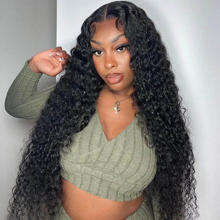 Leeroya 4x4 Lace Closure Deep Wave Wigs Natural Black Realistic Hairline Preplucked With Baby Hair
