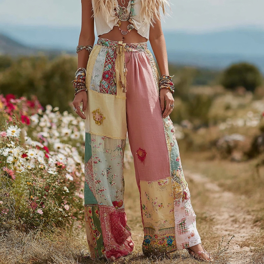 Floral Patchwork Print Casual Pants
