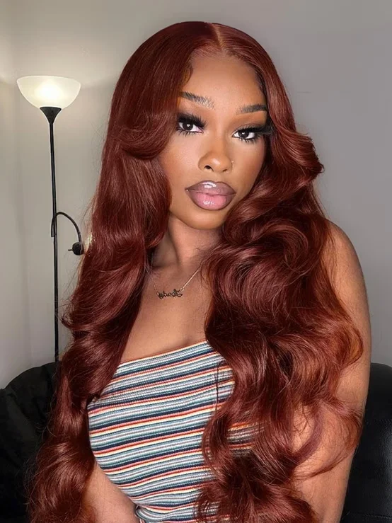 leeroya 7x5 ByeBye Knots Wig Auburn Reddish Brown Body Wave Put on and Go Glueless Wigs with InvisiKnots