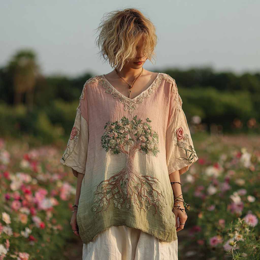 Vintage Tree Of Life Gradient Half Sleeve T-shirt