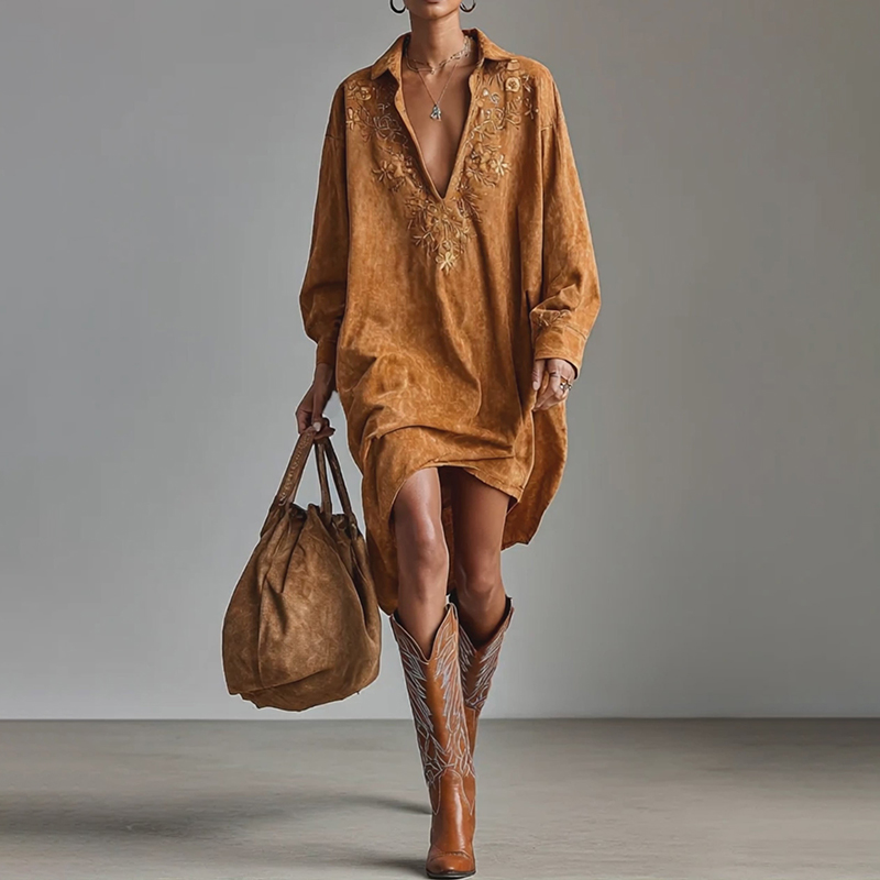 🤎 Western Retro Suede Dress – Rugged Charm Meets Everyday Comfort